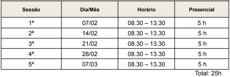 Modalidade: Curso de Formação Presencial