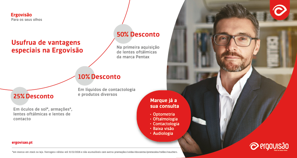 25% de desconto em óculos de sol, armações, lentes oftálmicas e lentes de contacto